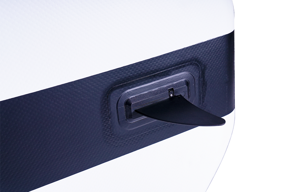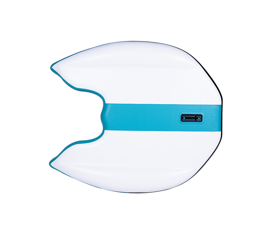 Le FLATFORM JUNIOR est conçu pour exceller en navigation grâce à des innovations uniques. Son Bat Wing, positionné entre les jambes, réduit efficacement les vagues générées par le moteur électrique, offrant une glisse plus fluide. L’ajout de "rocker" sur les pointes améliore encore la maniabilité et facilite les déplacements, même lorsque le plan d’eau est agité. Sa nouvelle carène, optimisée par la construction MONOCORE DS, remplace les anciens petits ailerons fixes sous les boudins latéraux, tout en intégrant une grande dérive amovible située à l’arrière, avant la position du moteur. Cette configuration assure un meilleur contrôle directionnel et une stabilité parfaite, même avec les nouvelles motorisations douces, comme les PODs de KAHE SURF.