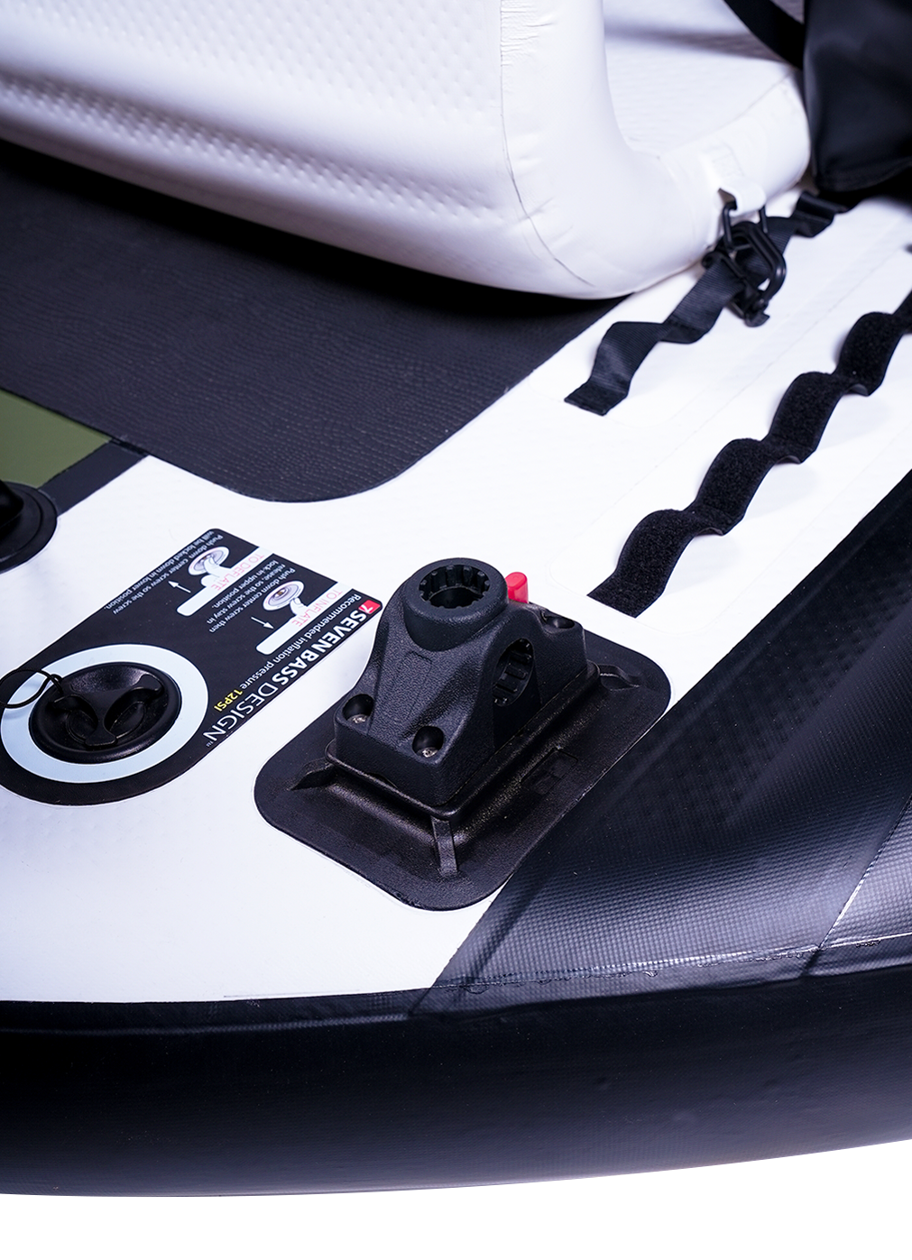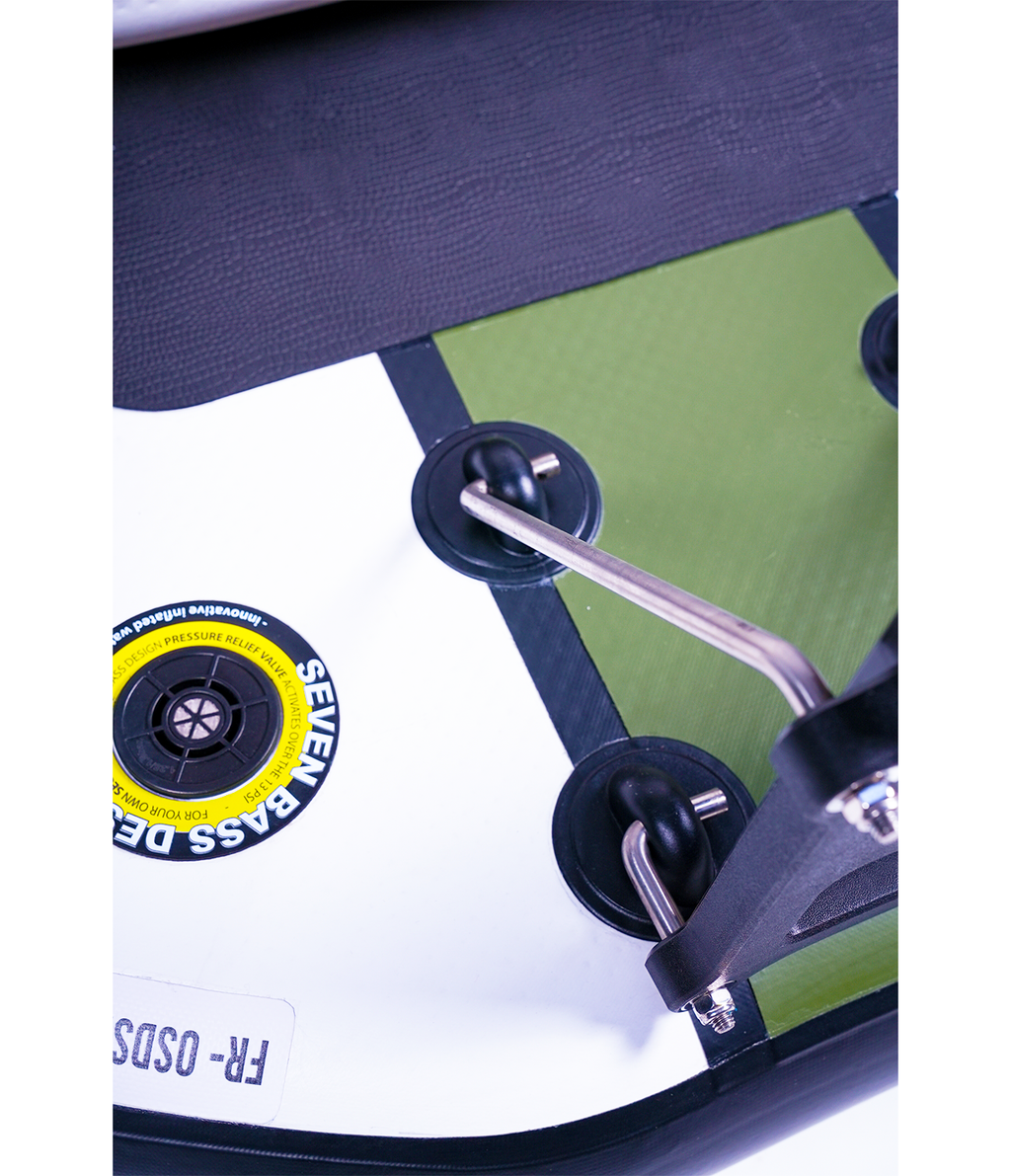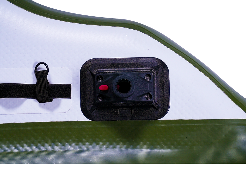 Le FLATFORM JUNIOR se distingue également par ses équipements de haute qualité, conçus pour s’adapter à tous les besoins des pêcheurs. Ses sacs latéraux utilisent le système MOLLE, un concept issu du milieu militaire. Grâce à ses sangles modulaires, ce système permet de sécuriser et de repositionner les "Side Bags Flex Cargo" ou tout autre accessoire selon vos préférences, offrant ainsi une grande modularité. En matière de sécurité, une nouvelle Relief Valve a été intégrée. Ce dispositif ingénieux protège la structure contre les risques liés à une surpression due à la chaleur ou à un gonflage excessif. En libérant automatiquement l’excès d’air, cette valve garantit une utilisation en toute sérénité, même dans des conditions exigeantes. Enfin, le support moteur a été amélioré pour offrir une solidité renforcée, permettant une navigation fiable et sans compromis.