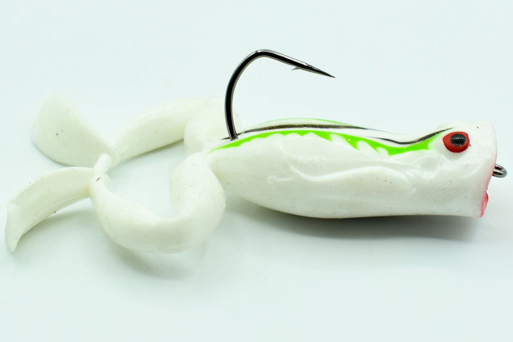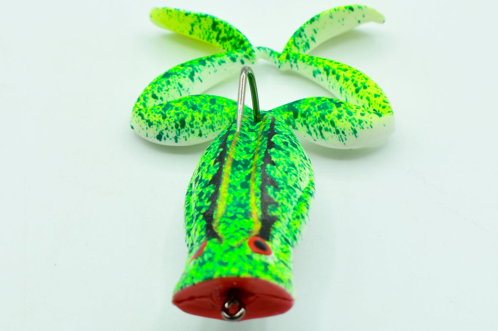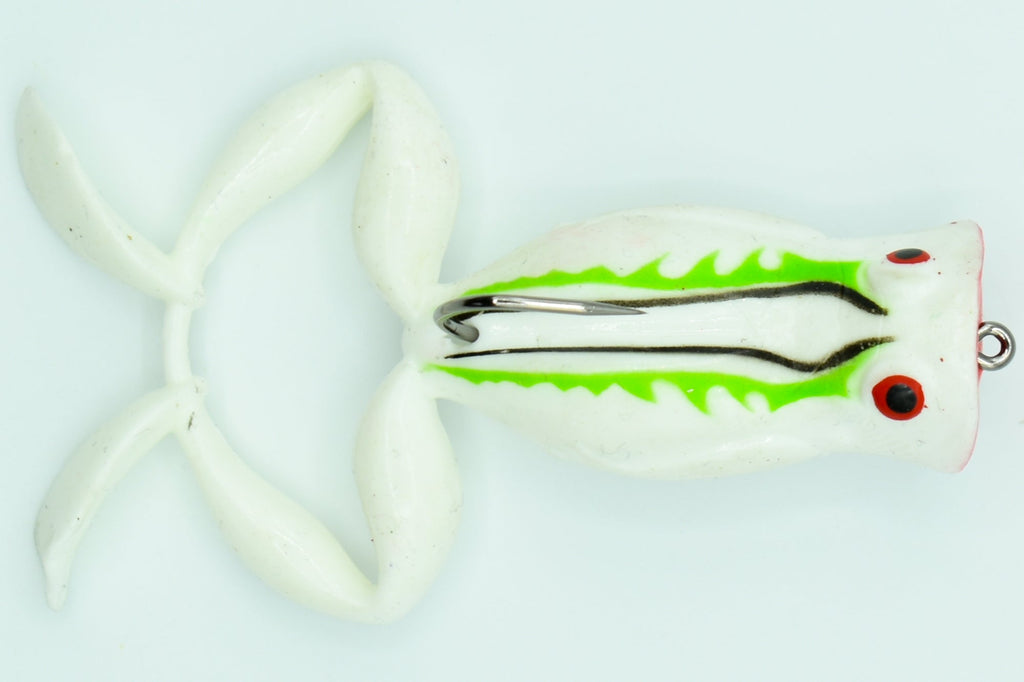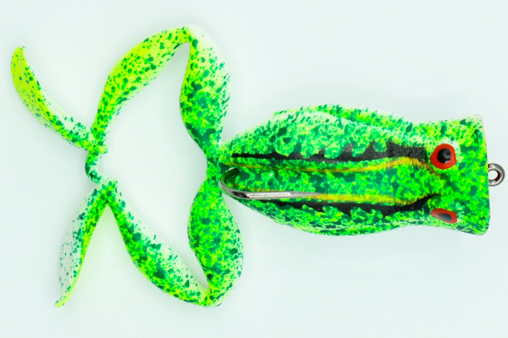 La KIMIKO FROG 70 est un leurre souple flottant de 70 mm, spécialement conçu pour imiter une petite grenouille évoluant en surface. Grâce à sa bouche poppante, elle génère des éclaboussures et des ondes sonores attractives à chaque animation, ce qui attire immédiatement l’attention des carnassiers embusqués dans les herbiers et zones calmes.