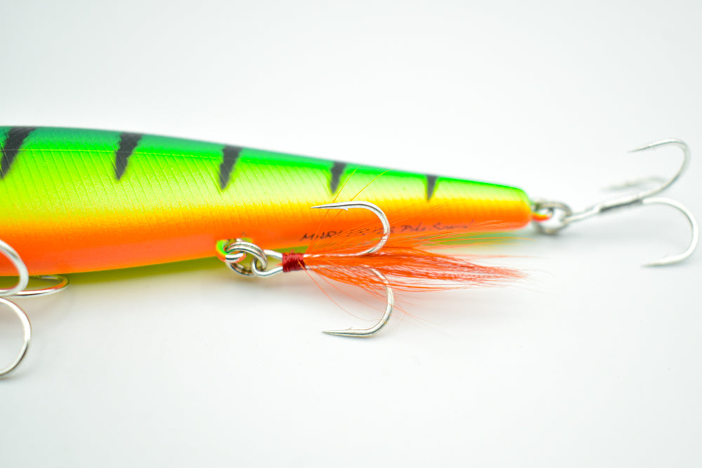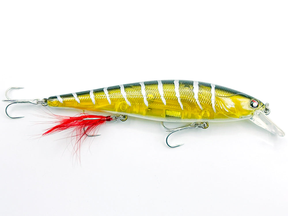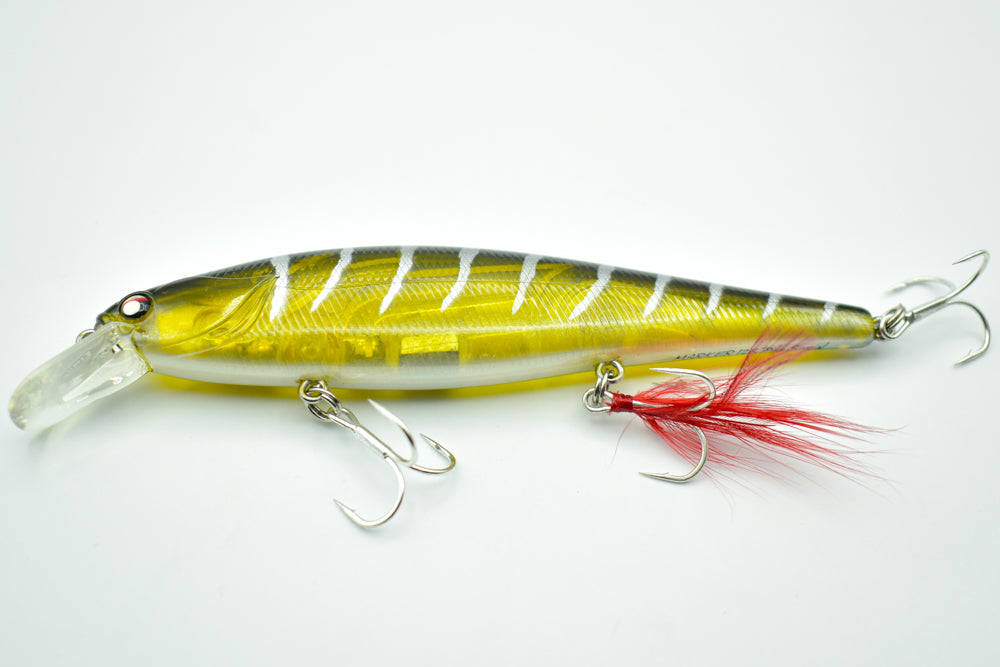Lors de la récupération, le MARKER 128 expose ses flancs brillants, imitant à la perfection un poisson fourrage vulnérable. Animé avec des tirées sèches, il reproduit le comportement erratique d’une proie désorientée, un déclencheur imparable pour provoquer les attaques des brochets, même lorsqu’ils se montrent méfiants.