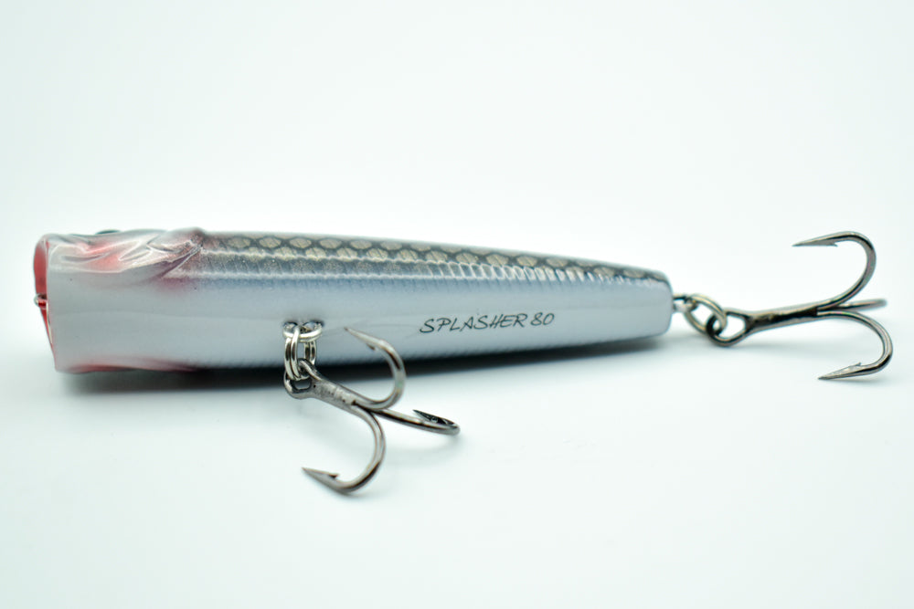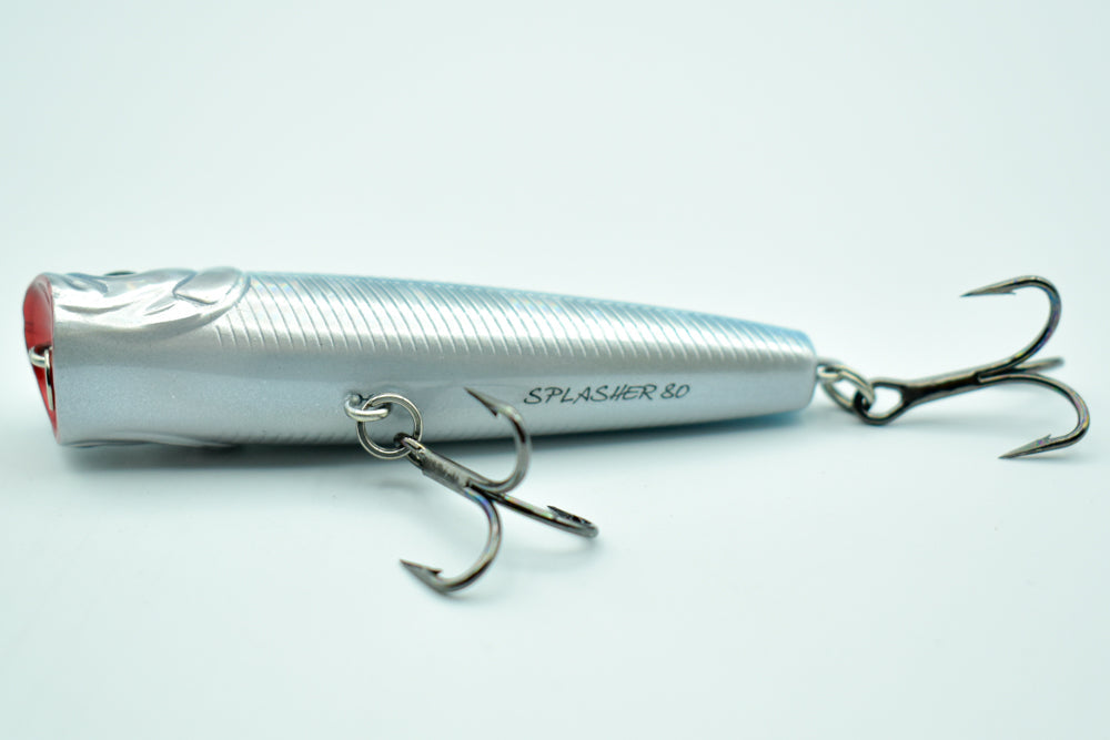 Le SPLASHER 80 est un popper compact et redoutablement efficace pour traquer les brochets, grosses perches et autres carnassiers agressifs. Sa bouche concave surdimensionnée génère de puissants “pops” et de larges gerbes d’eau, imitant à la perfection la fuite paniquée d’une proie en surface.