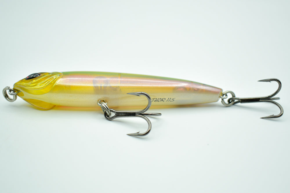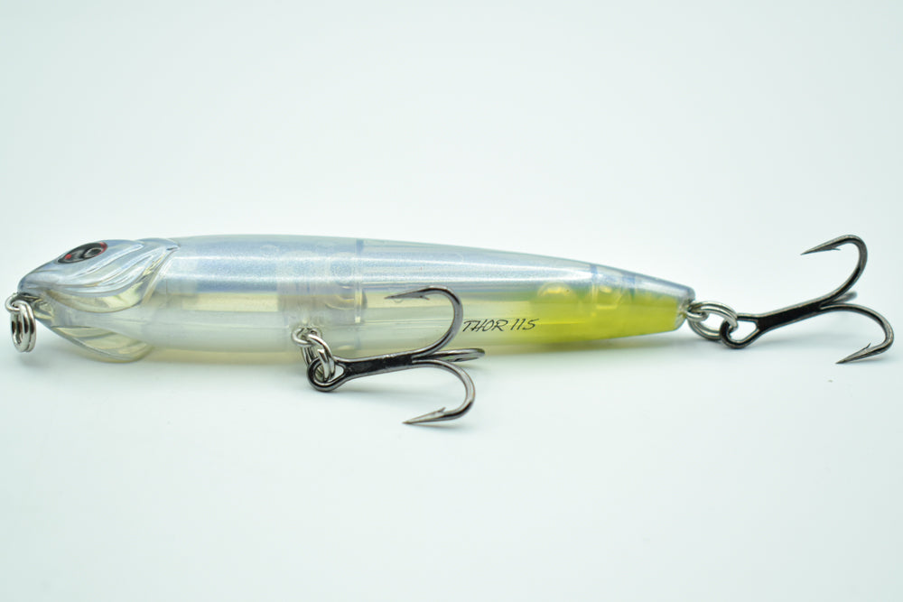 Le THOR 115 est un stickbait flottant conçu pour une prospection étendue. Sa nage en “Walking the Dog” imite un poisson en fuite, déclenchant les attaques des carnassiers.