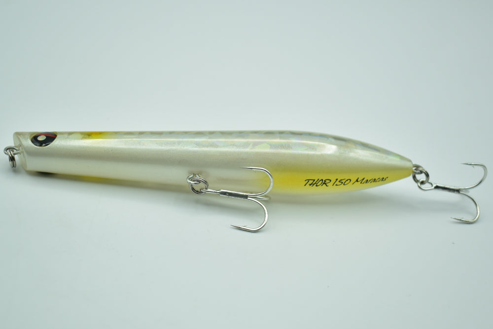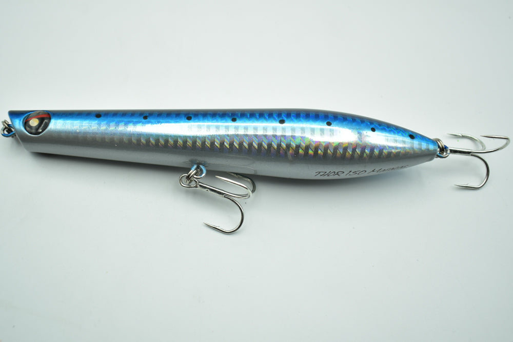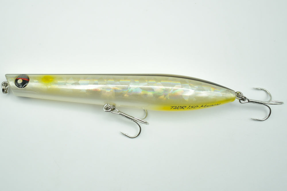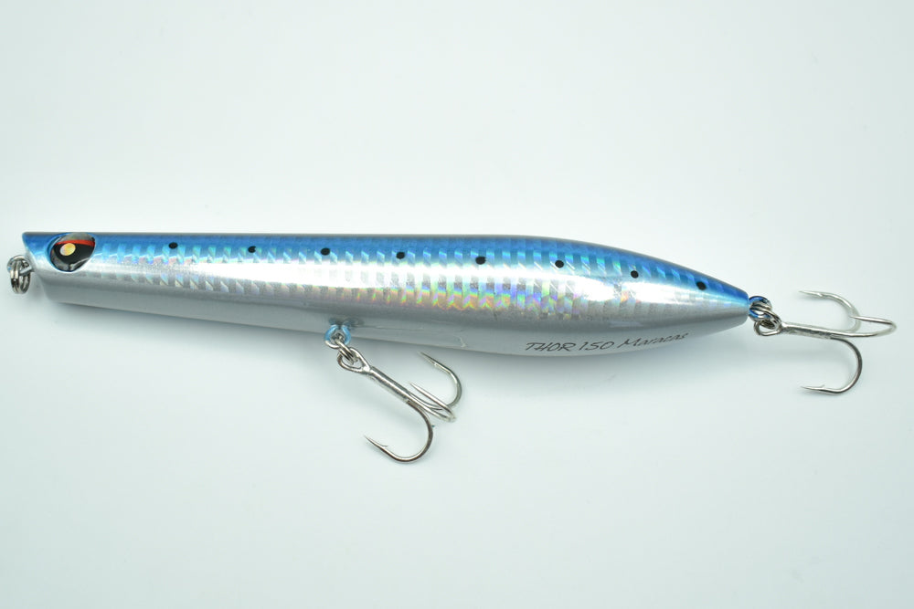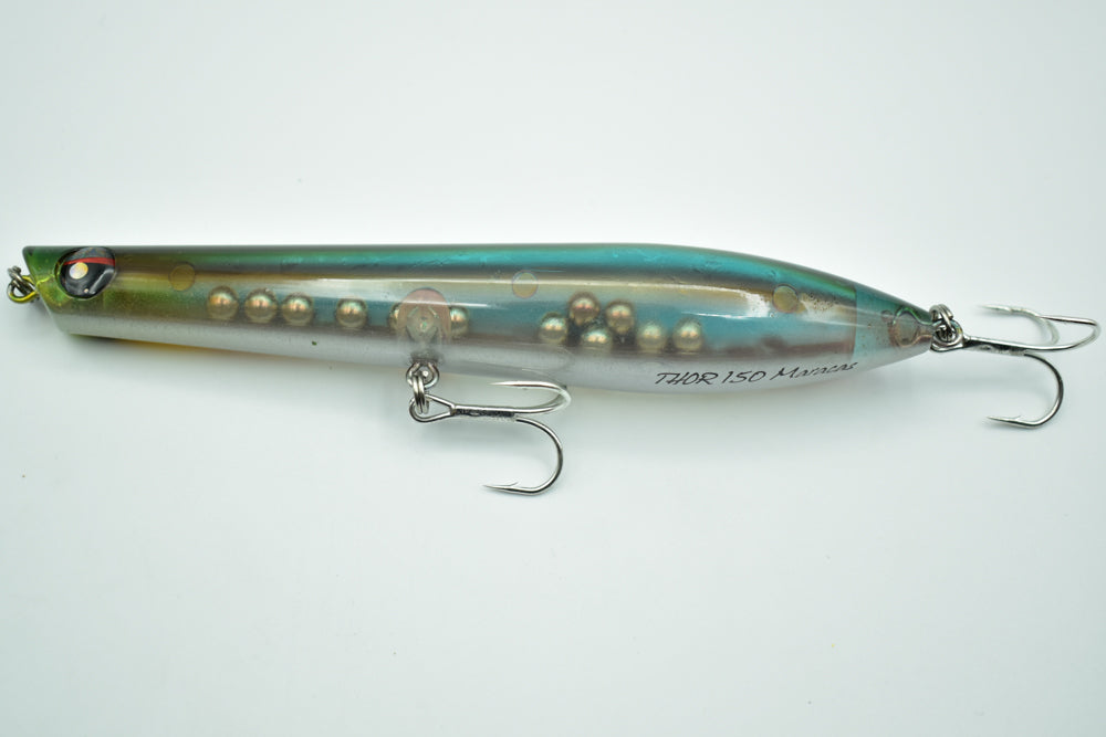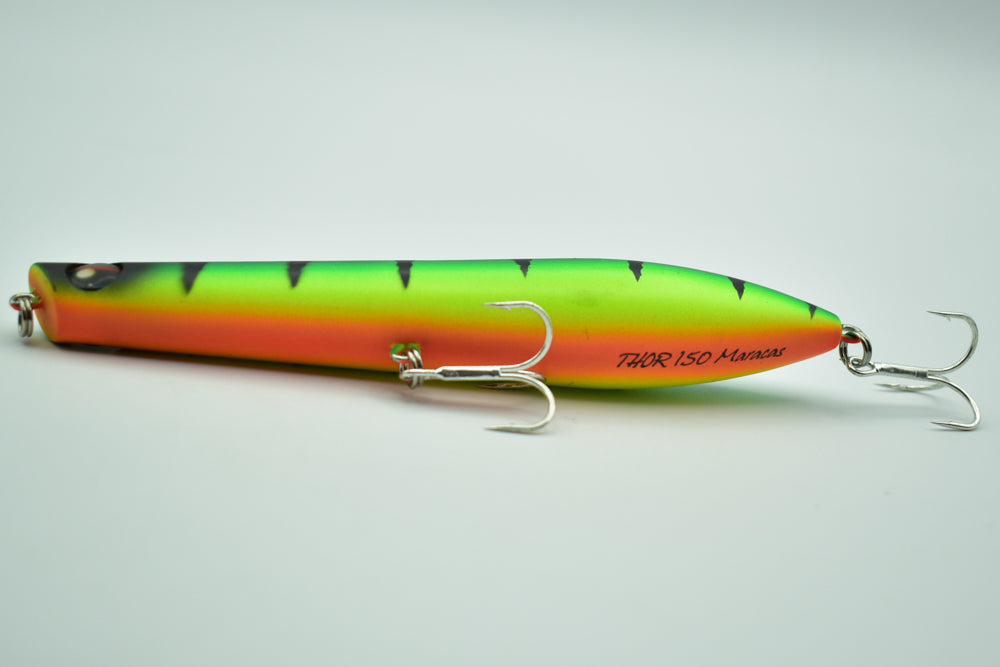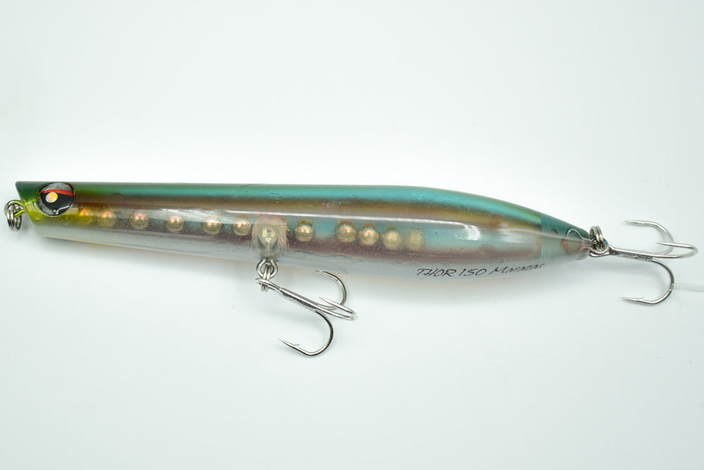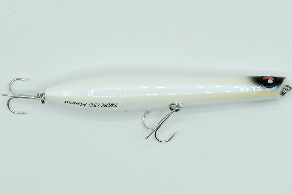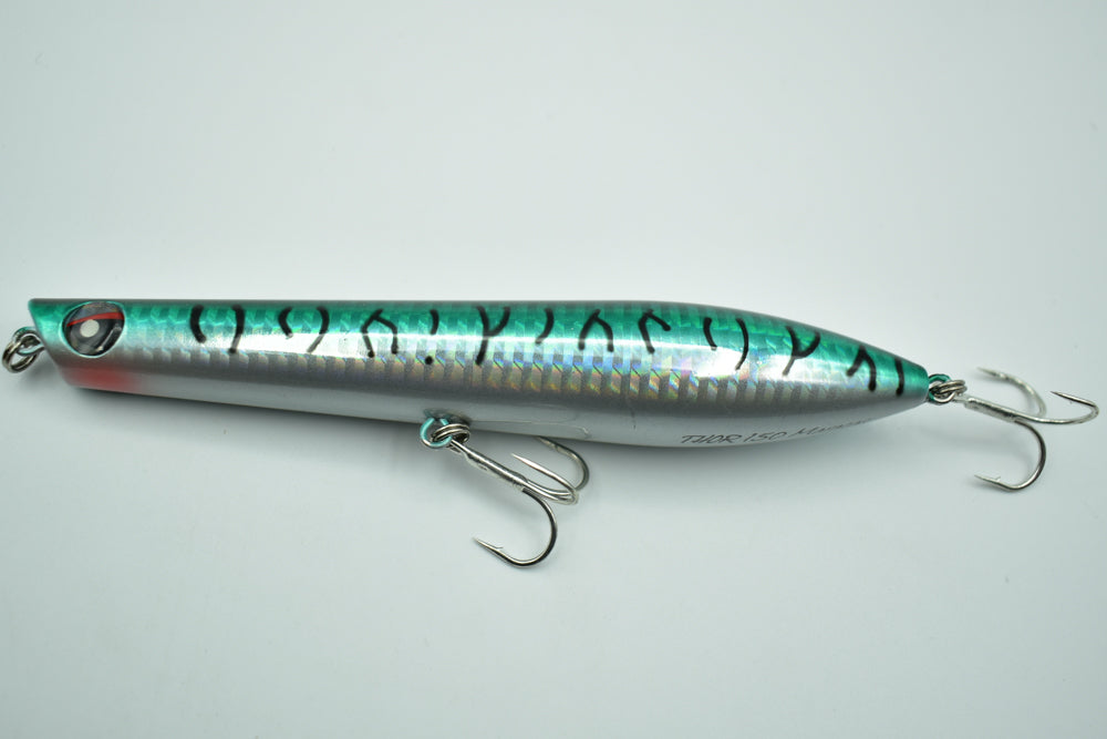 Le THOR 150 Maracas est un stickbait flottant conçu pour la pêche des carnassiers marins. Doté de billes à l’intérieur, il génère des vibrations et des sons qui attirent les poissons de loin.