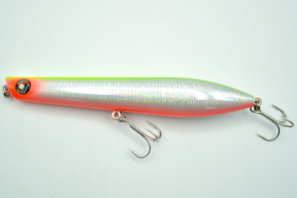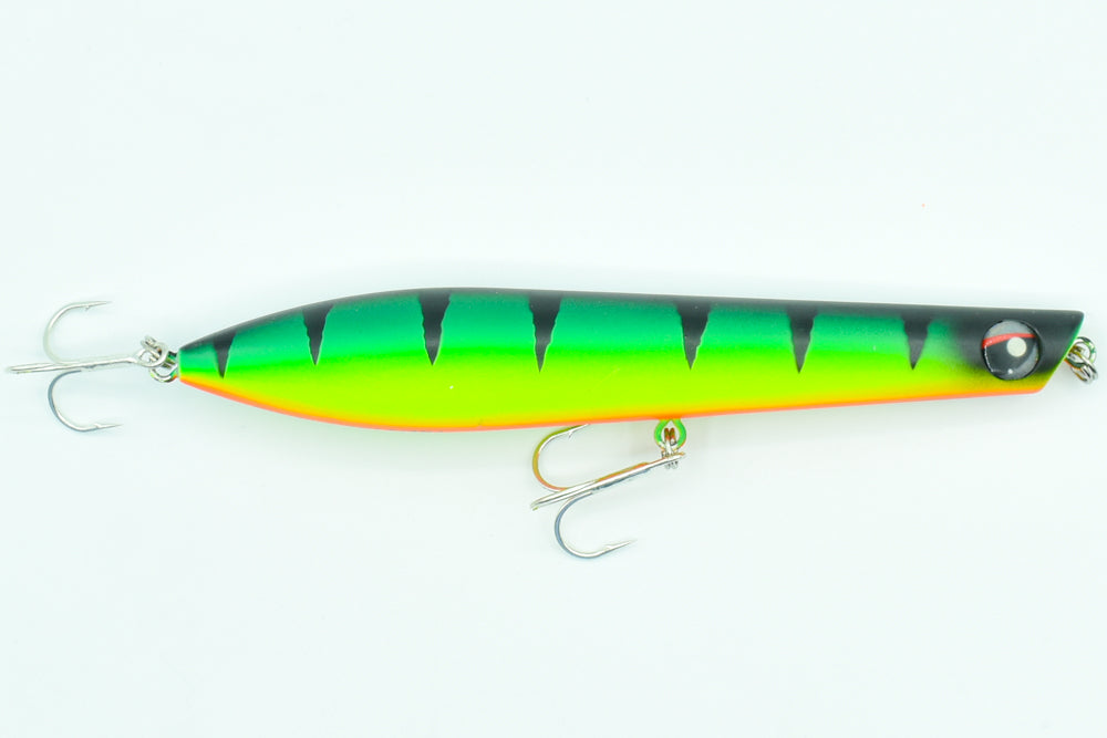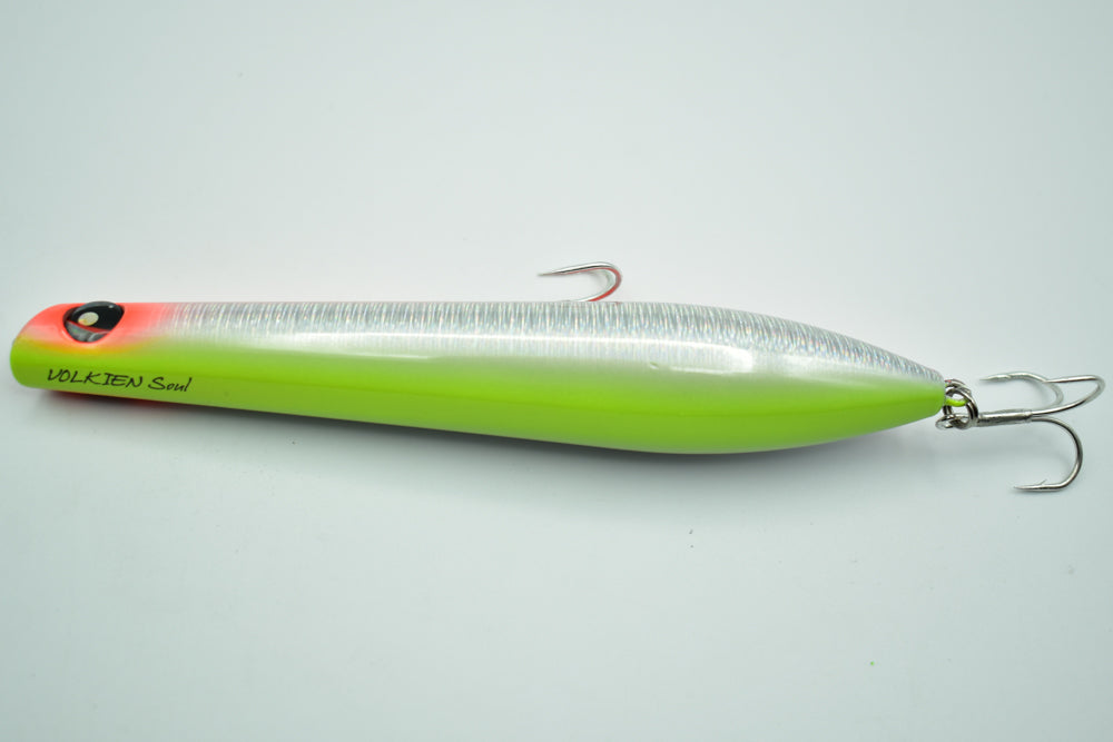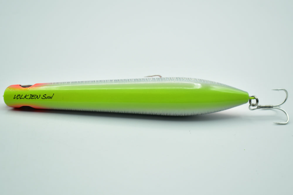 Sa nage en “Walking the Dog” très erratique imite parfaitement un poisson poursuivi par un prédateur, tandis que sa bouche concave crée de belles gerbes d’eau pendant l’animation, rendant le leurre encore plus attractif.