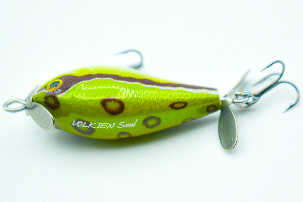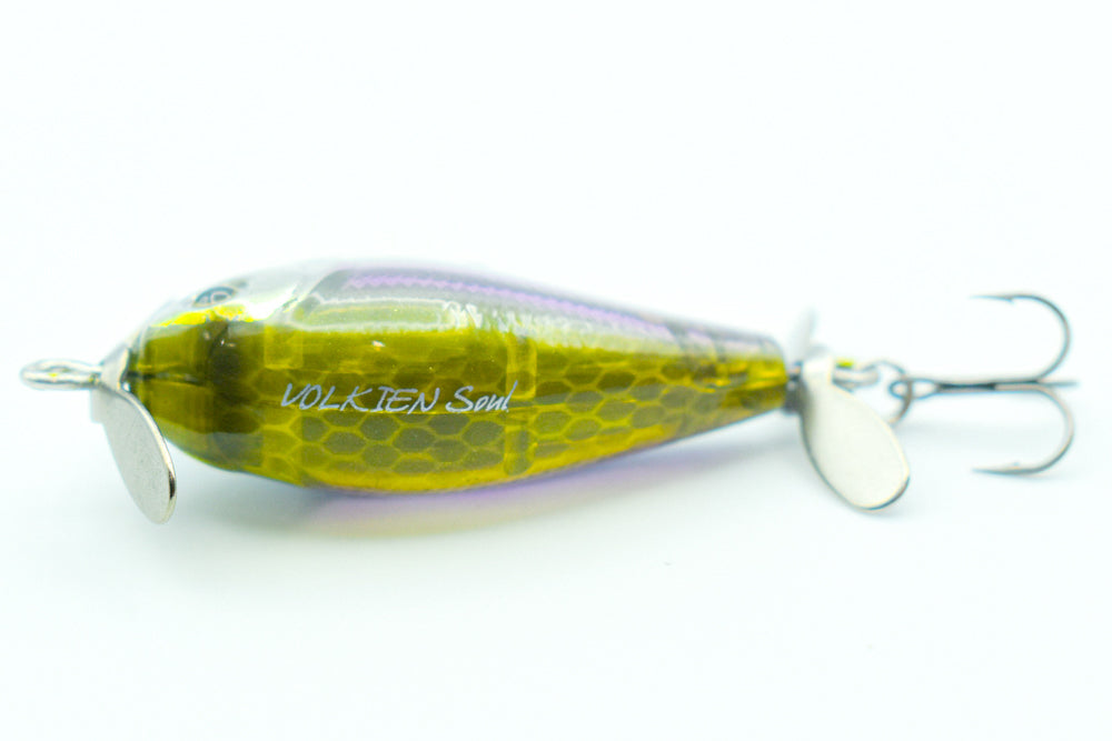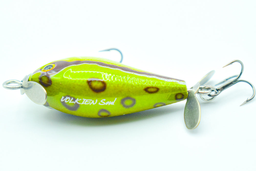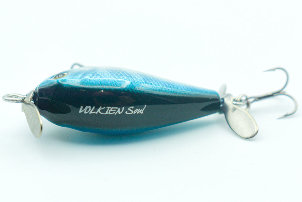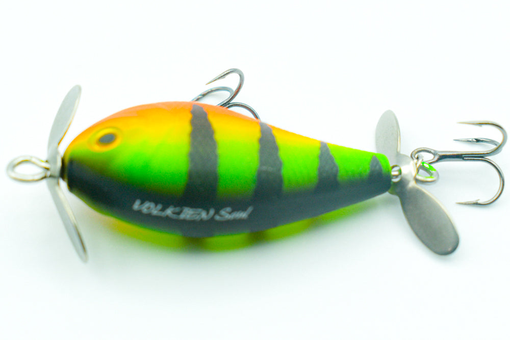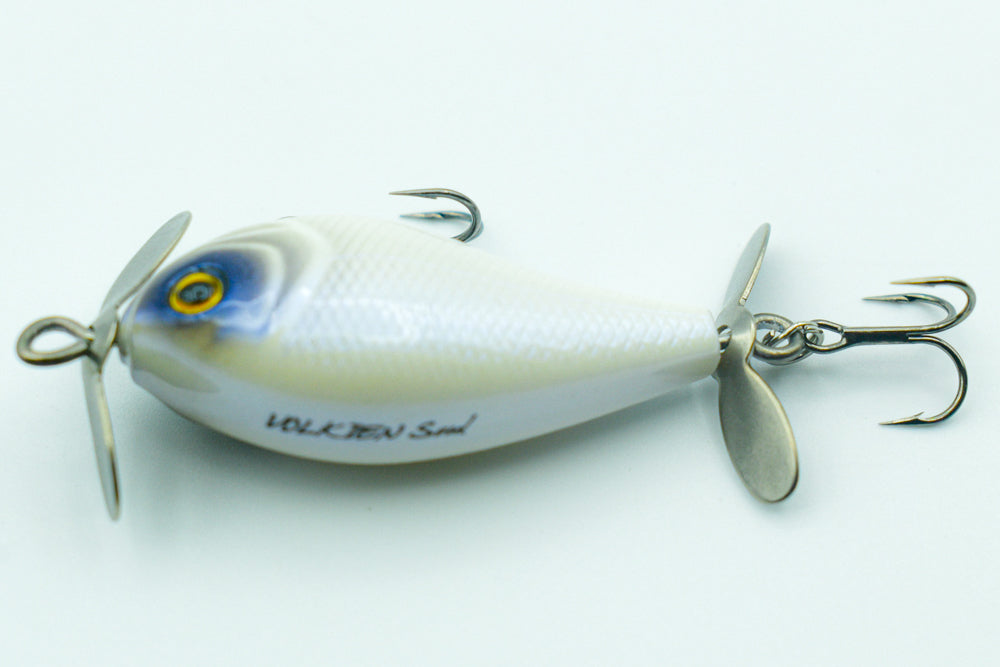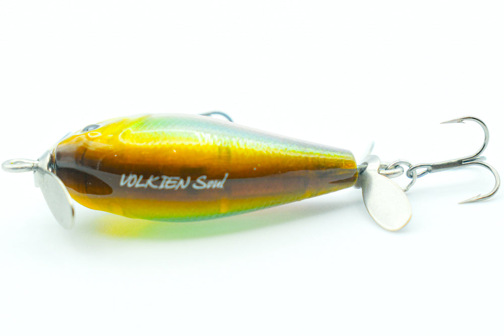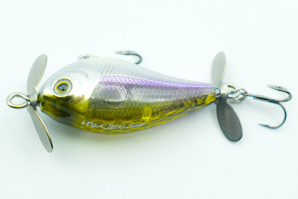 Son animation est polyvalente : en cranking régulier ou par tirées sèches, il se met immédiatement en action. Ses hélices brassent l’eau et projettent une gerbe éclaboussante qui attire les poissons de loin et déclenche des attaques fulgurantes.