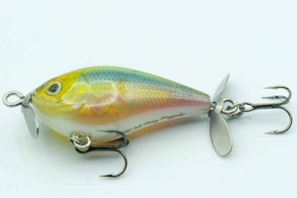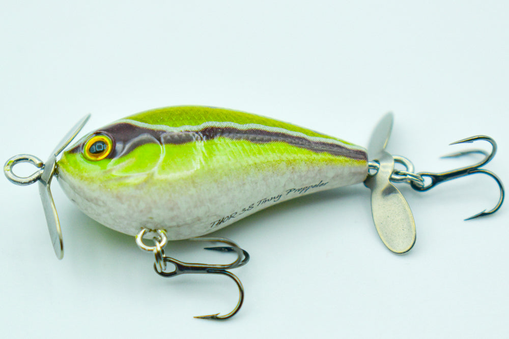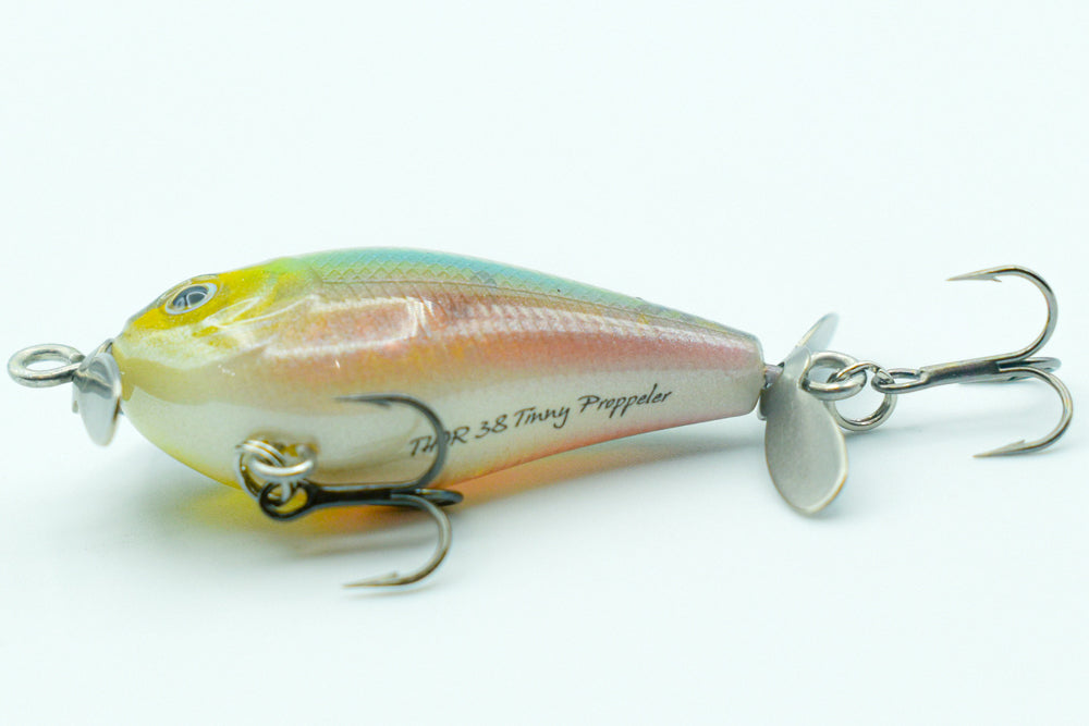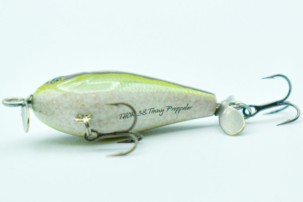Le THOR 38 Tinny Propeller est un petit leurre de surface équipé d’hélices, spécialement pensé pour provoquer les carnassiers même les plus méfiants. Compact et léger, il excelle dans les pêches estivales ou en eaux peu profondes.